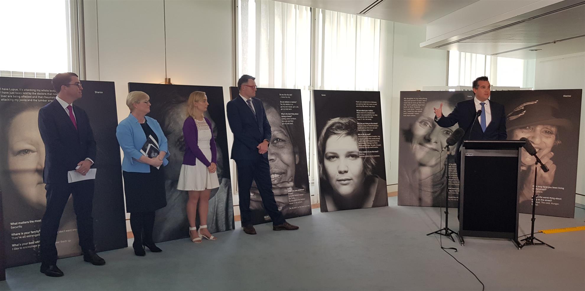 Senator Dean Smith contacted us about exhibiting the portraits to Federal politicians in Parliament House Canberra. It was a great opportunity to influence the country’s decision-makers. Senator Smith along with Judith and the team organised the event, including location, speakers, promotion, shipping the portraits over and back etc.