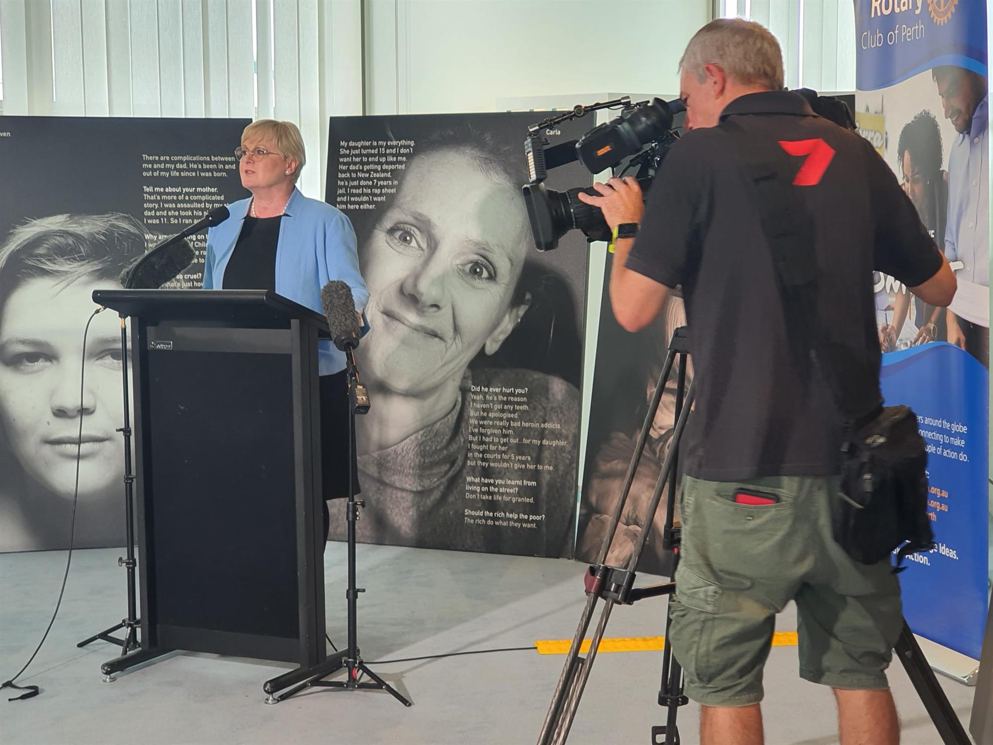 Perth Rotarian Judith Pinczuk is awarded a Paul Harris Fellow at the Liquid Gold Polio Dinner. The Rotary Homeless Hub has an Eye Contact Exhibition of 20 large portraits showing homeless people in a sympathetic light, each with their own stories. It is designed to show their humanity and to encourage deep conversations about the realities affecting the more vulnerable of our community.