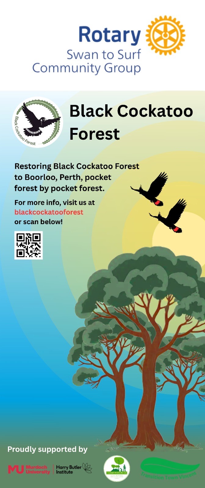 Over the long weekend, members of the Surf 2 Swan RCG gathered at the Hyde Park Fair to spread the word about the work currently being undertaken to establish Pocket Forrest habitats within our suburban areas. Members of the public were invited to learn about the Pocket Forest Project—an innovative urban greening initiative delivered in partnership with Murdoch University, the Town of Vincent, and Rotary. The public had the opportunity to make a black cockatoo and to connect with those behind the team. It was a fantastic opportunity for Rotary to connect with the public in the Rotary International Focus area of the Environment.