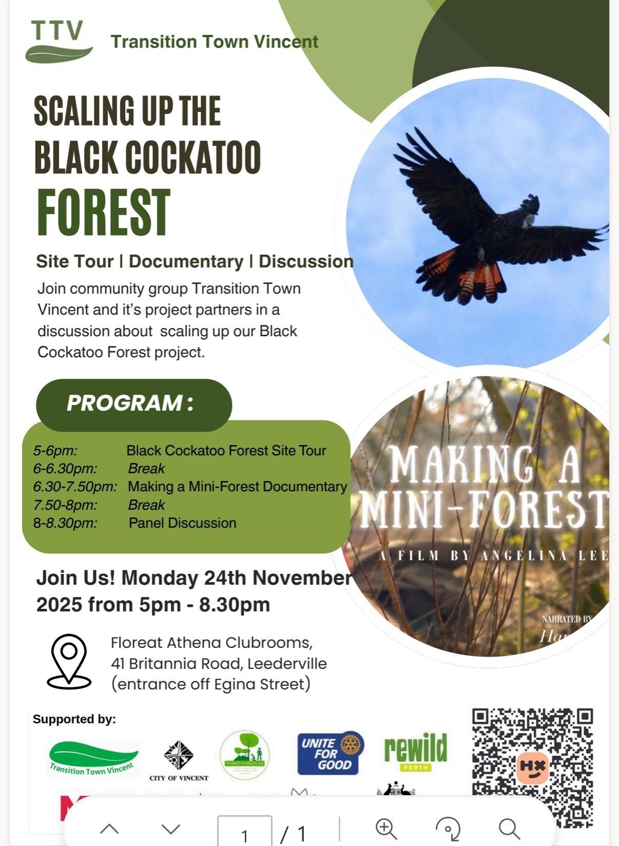 Join the Surf 2 Swan Community Group on a site tour & discussion about scaling up the Town of Vincent's Black Cockatoo Forest project. This is a rare opportunity to explore a unique solution to increasing our urban tree scape.