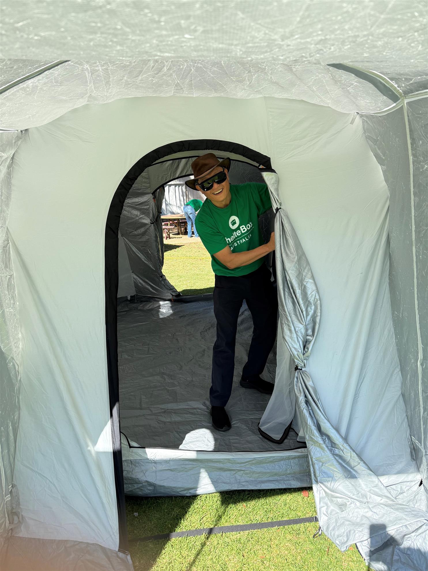 How many Rotarians does it take to put up a Shelterbox Tent? THREE!!